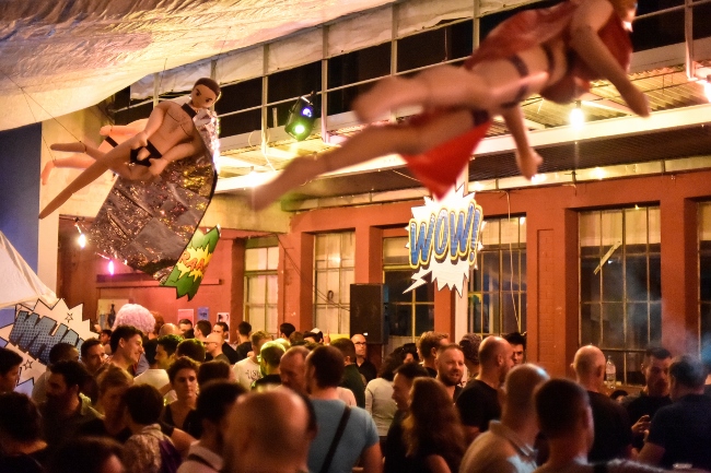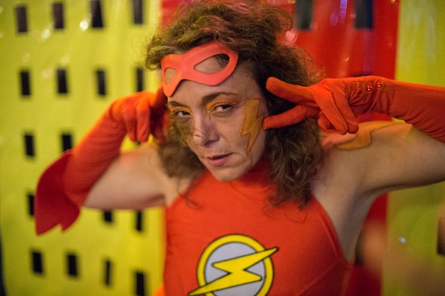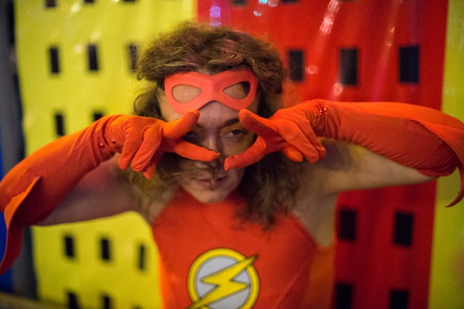 Rondeur Woman vs. l’Homme à Beignet 3 septembre 2016 Flashhhh! Ka-boom! Voici les photos de la soirée des superhéros à l'Usine Kugler, signées Irina Popa